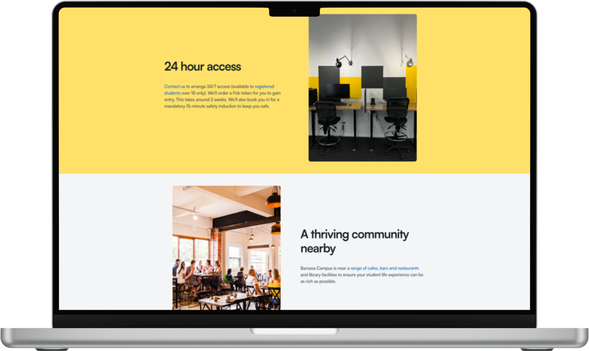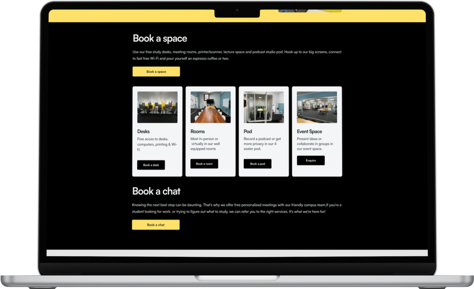 I rebuilt the website in Webflow and treated it as the operational front door to the campus, not just a source of information. Registrations, bookings, access, and reporting were designed to work together as a single system.
